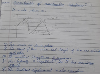 - In Constructive interference resultant displasement is maximum and in distructive interference resultant displasement is minimum.
